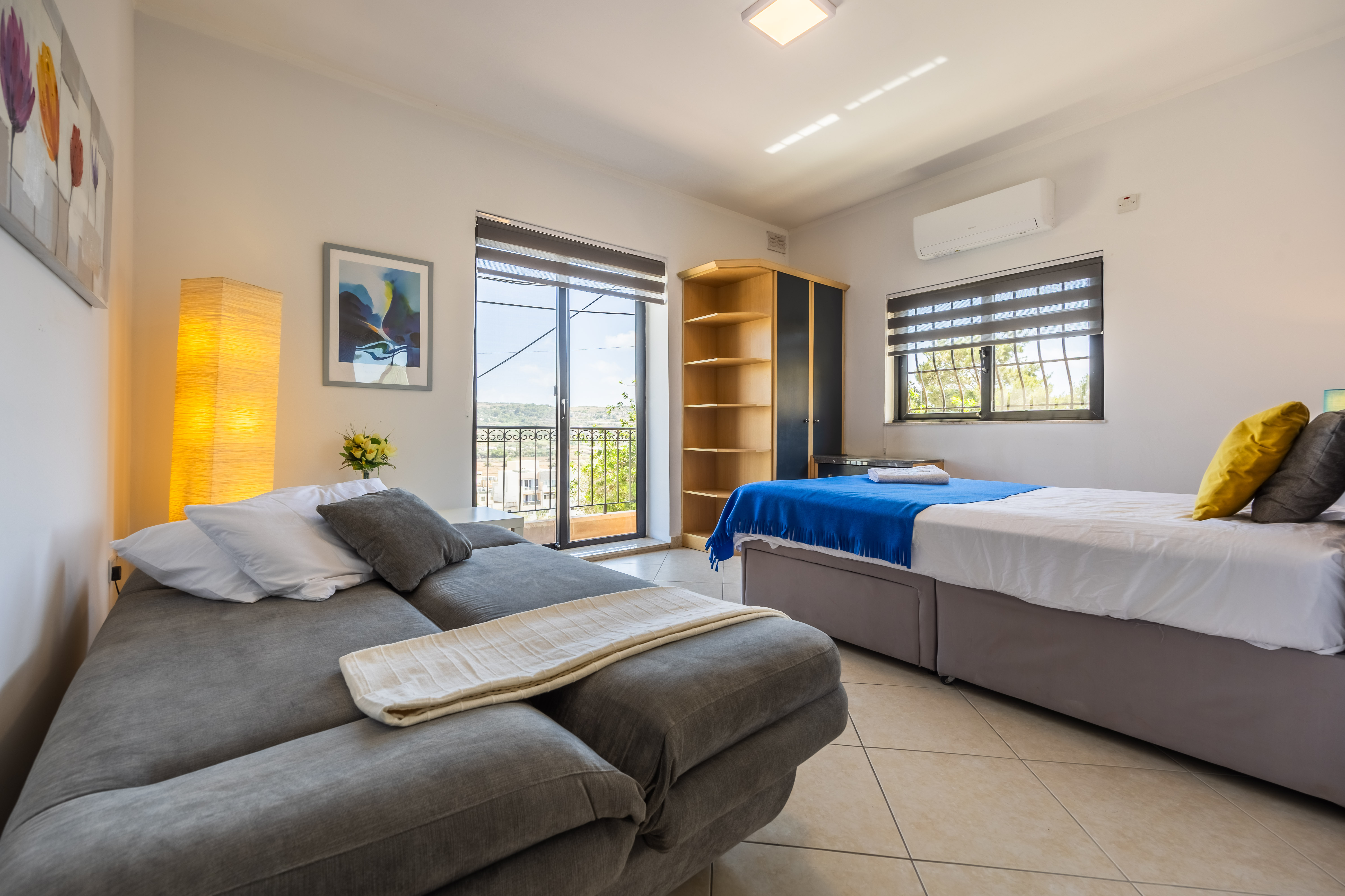 Spacious, airy bedroom with private balcony. Double bed with additional fold out sofa bed and air conditioning.